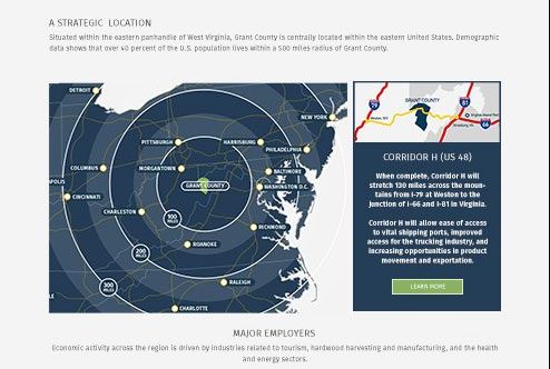 We worked with the Grant County Development Authority to construct a new and improved website featuring a revised content structure and focus on visual communication. Mapping products and demographic information were integrated into the site design, and content re-structured to improve navigation.